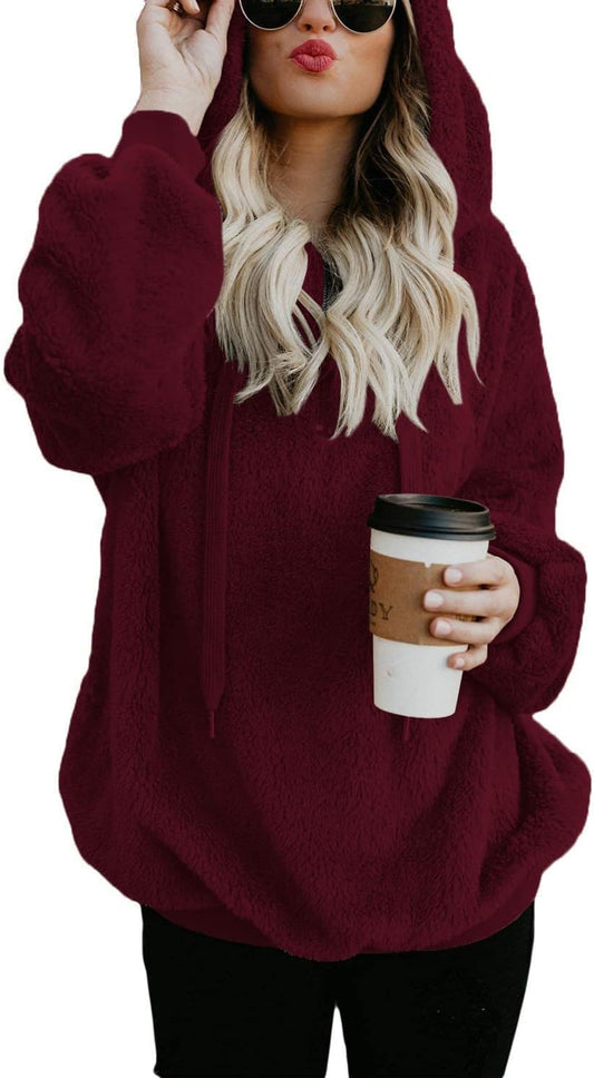 Women's Oversized Fleece Hoodie - Long Sleeve Casual Pullover Sweater for Fall and Winter